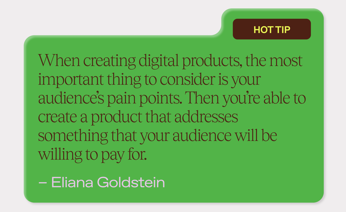 We asked Eliana about how she got started as a content creator, her best tips for monetization, and how she uses digital products to funnel followers and clients.